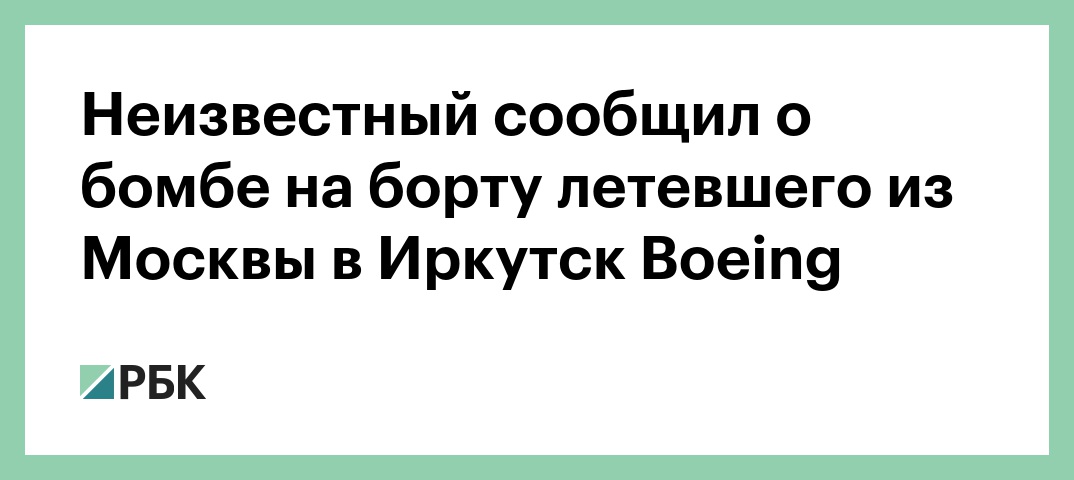 Неизвестный сообщил о минировании самолета Boeing 737-800 авиакомпании «Аэрофлот», который следовал из Москвы в Иркутск. Об этом РБК сообщили в пресс-службе Восточно-Сибирского линейного управления на транспорте МВД России.