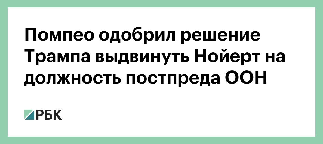 Нойерт в ответ сказала, что работать в команде с Помпео и другими сотрудниками Госдепа честь для нее и она готова продвигать интересы американцев в ООН, если ее назначат постпредом.