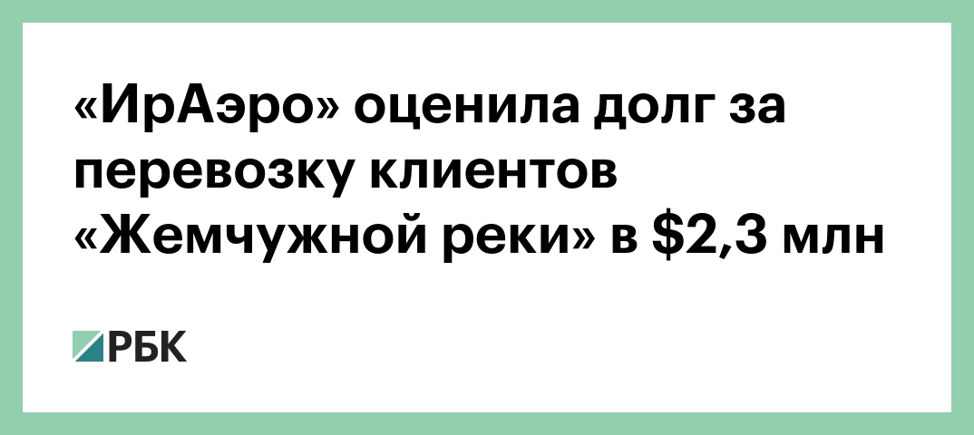 Заместитель гендиректора по общим вопросам авиакомпании «ИрАэро» Сергей Крупнов заявил, что задолженность туроператора «Жемчужная река» перед перевозчиком составляет порядка $2,3 млн, передает ТАСС.