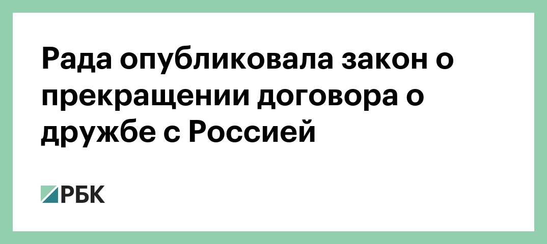 Указывается, что закон вступает в силу на следующий день после публикации. «Верховная рада Украины постановляет: прекратить с 1 апреля 2019-го действие Договора о дружбе, сотрудничестве и партнерстве», — говорится в документе. В документе также отмечается, что прекращение действия договора освобождает Киев «от любого обязательства по его выполнению и не влияет на права, обязательства или правовое положение Украины».