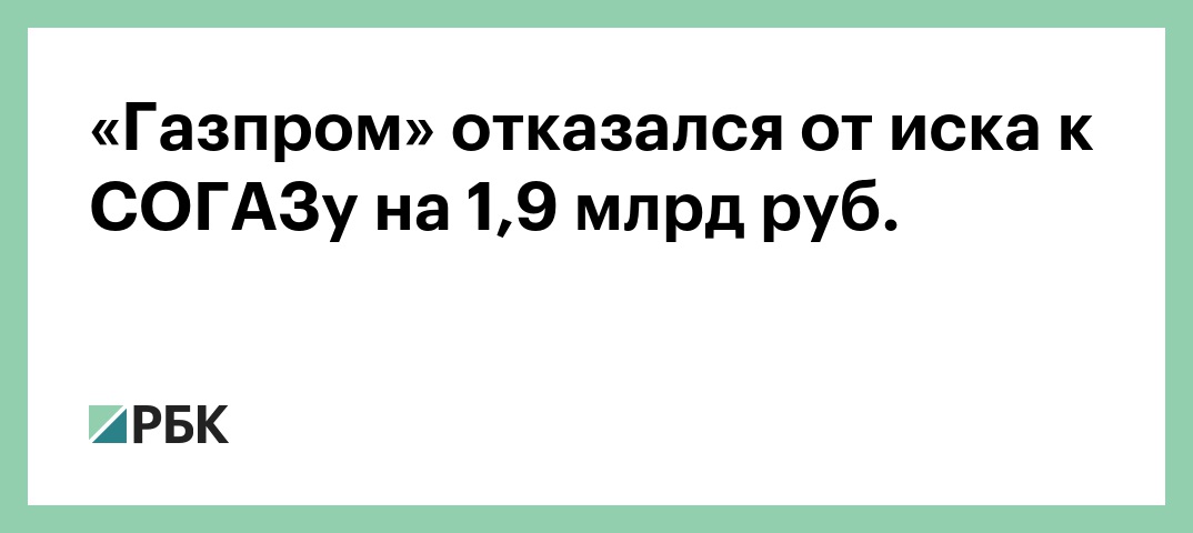 «Газпром» отказался от иска к СОГАЗу на 1,9 млрд руб.