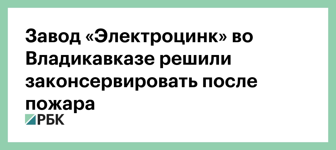 Деятельность завода Уральской горно-металлургической компании (УГМК) «Электроцинк» во Владикавказе будет полностью прекращена, заявили РБК в пресс-службе ОАО «Электроцинк».