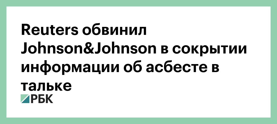 Reuters обвинил Johnson&Johnson в сокрытии информации об асбесте в тальке