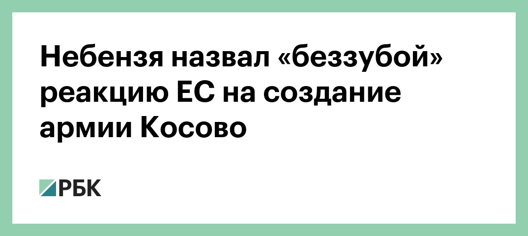 Постпред России при ООН Василий Небензя во время выступления в Совбезе организации выразил разочарование позицией ЕС по трансформации Сил безопасности Косово (СБК) в армию и назвал реакцию Брюсселя на эти события «беззубой».