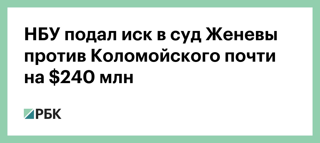 Национальный банк Украины (НБУ) подал иск в суд Женевы против бывшего руководителя Приватбанка Игоря Коломойского на сумму 6,64 млрд гривен (около $240 млн). Об этом сообщается на сайте НБУ.