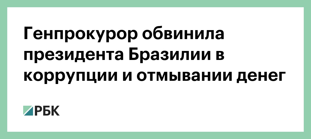 Генпрокурор Бразилии Ракель Додж предъявила обвинения в коррупционных преступлениях и отмывании денег президенту страны Мишелу Темеру, пишет Reuters со ссылкой на заявление генпрокуратуры.