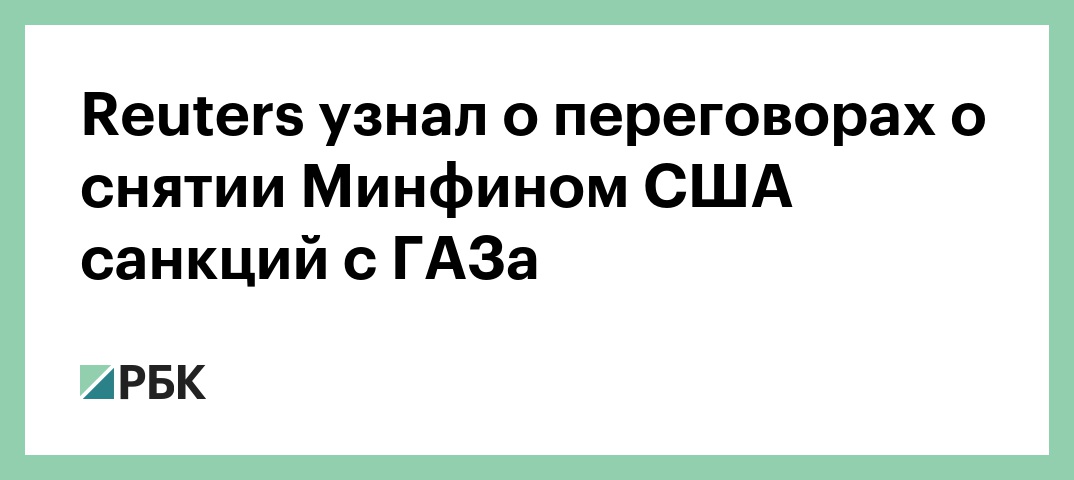 Reuters узнал о переговорах о снятии Минфином США санкций с ГАЗа