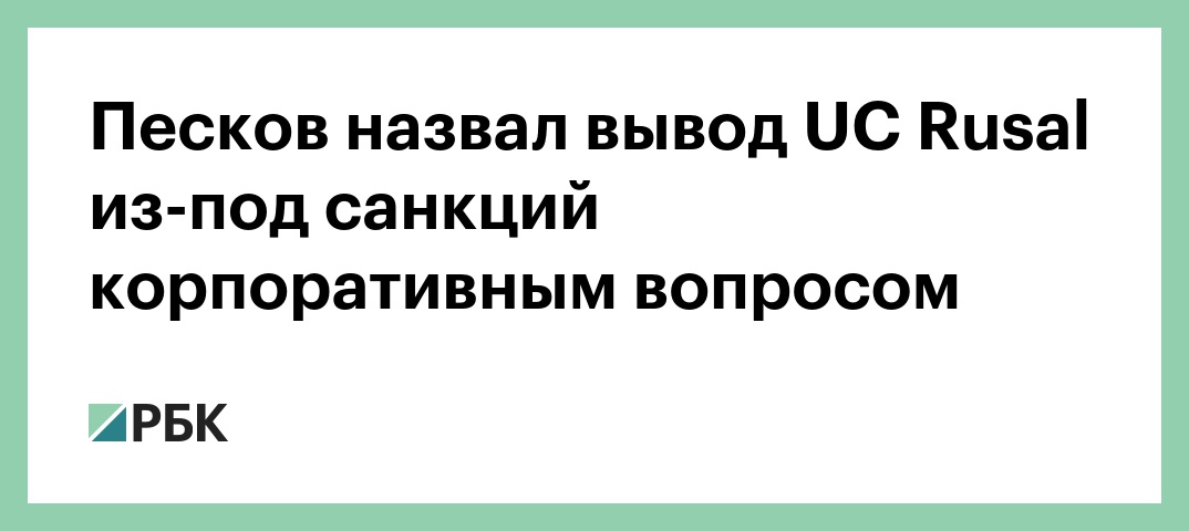 Пресс-секретарь российского президента Дмитрий Песков заявил, что вывод компании UC Rusal из-под санкций США является корпоративным вопросом, передает корреспондент РБК.