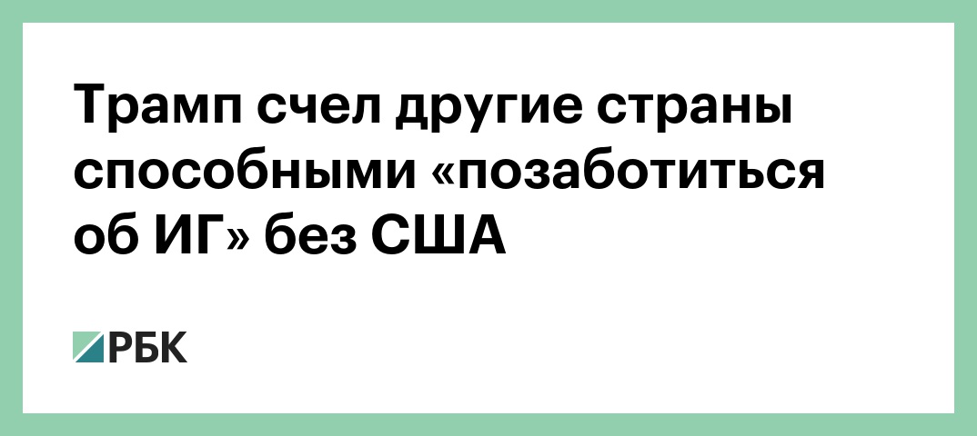 Он отметил, что изначально американские военнослужащие должны были присутствовать в Сирии «лишь три месяца», но «так и не ушли». Трамп добавил, что, когда он вступил в должность, ИГ «неистовствовала» в Сирии». «Но сейчас она в основном разгромлена, и другие местные страны, включая Турцию, могут легко себе позволить позаботиться о том, что осталось от ИГ», — написал американский президент.