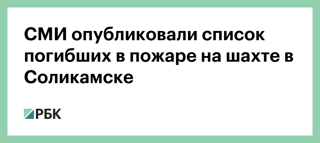 Список погибших в шахте в Соликамске опубликовало пермское агентство «Местное время». В нем значатся имена девяти человек: