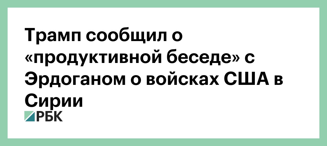 Трамп добавил, что также обсуждался вопрос расширения торговли между США и Турцией. Reuters со ссылкой на пресс-службу турецкого лидера сообщает, что во время беседы Трамп и Эрдоган договорились координировать военные и дипломатические действия, чтобы «не допустить возникновения вакуума власти в Сирии, которым могут злоупотребить при выводе США войск».