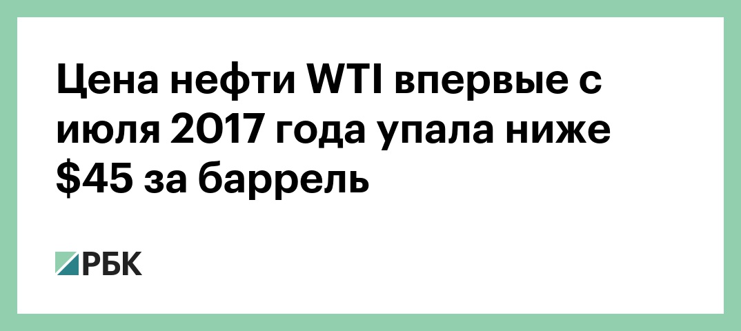 Цена нефти WTI впервые с июля 2017 года упала ниже $45 за баррель