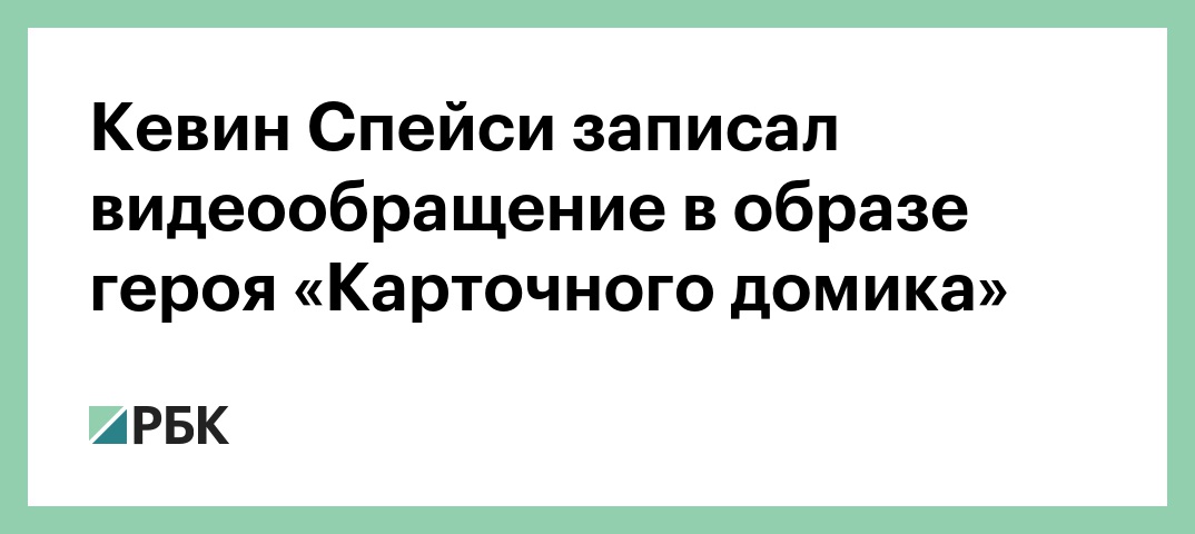 Американский актер Кевин Спейси впервые после скандала о сексуальных домогательствах записал видеообращение к публике под названием «Позвольте мне быть Фрэнком», где он предстал в образе главного героя сериала «Карточный домик» Фрэнка Андервуда. Ролик был опубликован на YouTube.