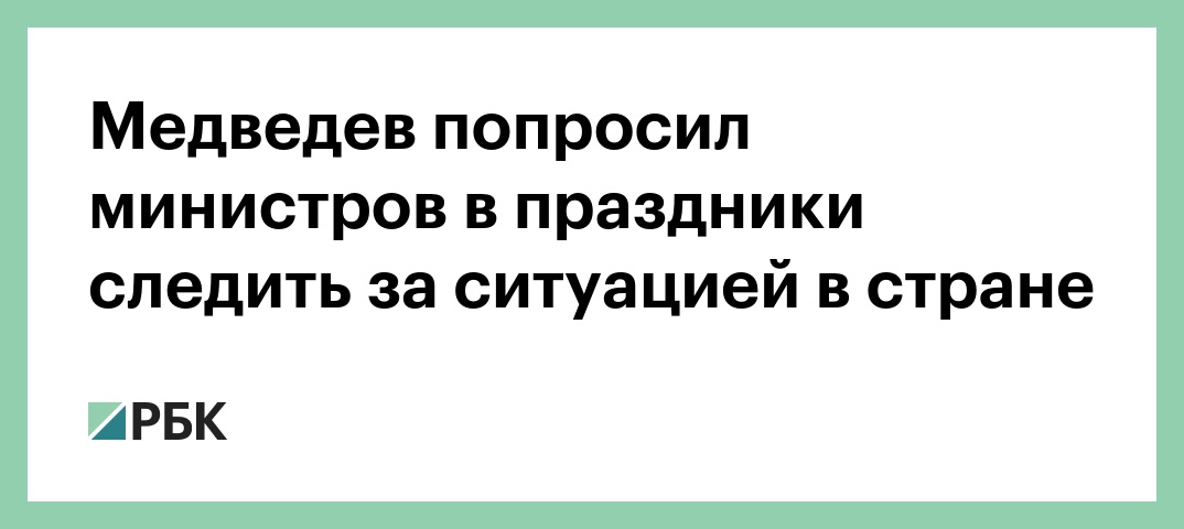 Медведев напомнил своим подчиненным, что у президента на праздниках сохранится «особый, напряженный график работы». «Правительство тоже не должно расслабляться, и в новогодние каникулы все должны следить за ситуацией в стране», — сказал премьер.