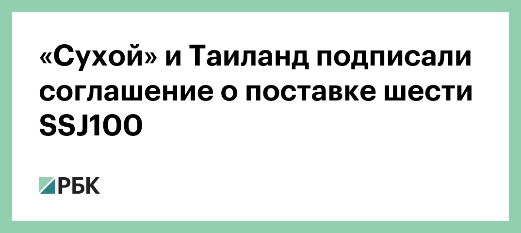 Компания «Гражданские самолеты Сухого» (ГСС) подписала соглашение о намерениях с тайской Kom Airlines Company Limited на поставку шести самолетов SSJ100 в 2019–2020 годах. Об этом говорится в сообщении Минпромторга России, поступившем в РБК.