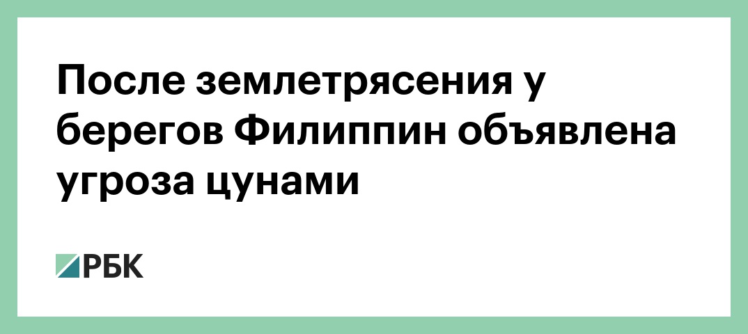 После землетрясения магнитудой 7,2, очаг которого был зафиксирован у филиппинского острова Минданао на юге страны, Тихоокеанский центр предупреждения о цунами выпустил сообщение, в котором заявил об угрозе цунами для регионов, находящихся в районе эпицентра толчка. Соответствующее сообщение размещено на его сайте.