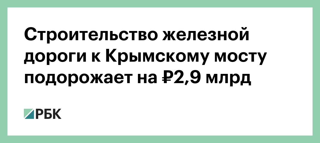 Строительство железной дороги к Крымскому мосту подорожает на ₽2,9 млрд