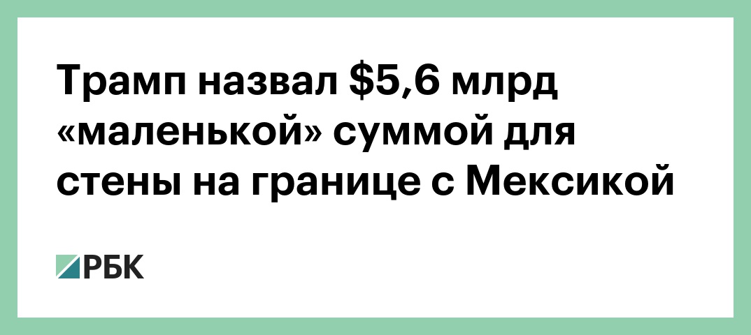Президент США Дональд Трамп заявил, что требуемая для строительства стены на границе с Мексикой сумма $5,6 млрд является «очень маленькой». Об этом сообщает CNN.