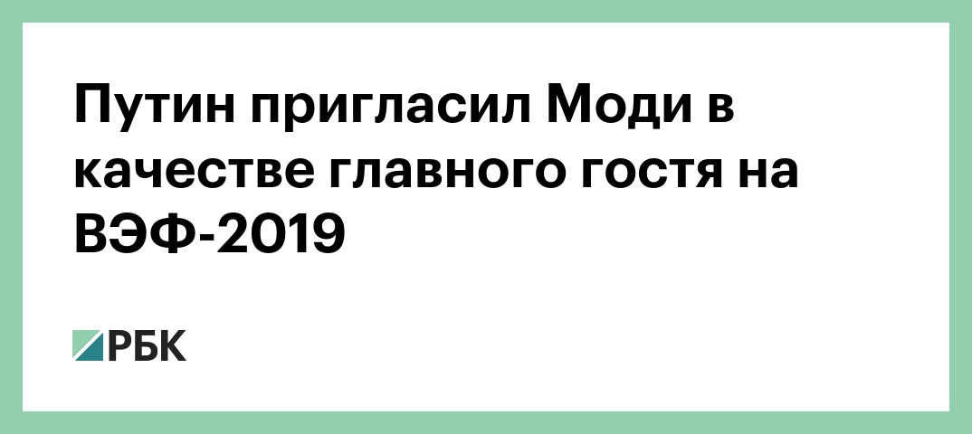 «Президент России пригласил премьер-министра Индии принять участие в качестве главного гостя в Восточном экономическом форуме во Владивостоке в сентябре 2019 года», — говорится в сообщении.