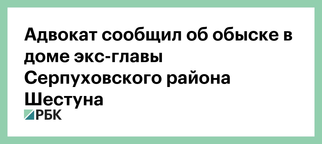Сотрудники Следственного комитета России в течение всего дня проводят обыск в доме бывшего главы Серпуховского района Московской области Александра Шестуна. Об этом РБК сообщил его адвокат Андрей Гривцов. «Следователи СК пришли утром, в семь часов, обыск до сих пор продолжается, еще не закончили. Неизвестно, что именно ищут, там стандартные формулировки», — рассказал адвокат. По его словам, в доме проживают супруга Шестуна и двое маленьких детей.