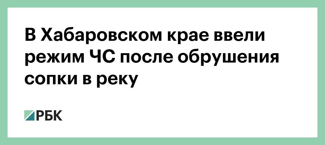 В Верхнебуреинском районе Хабаровского края после обрушения части сопки в реку Бурея в превентивных целях ввели режим ЧС. Об этом сообщает «РИА Новости» со ссылкой на главу района Алексея Маслова.