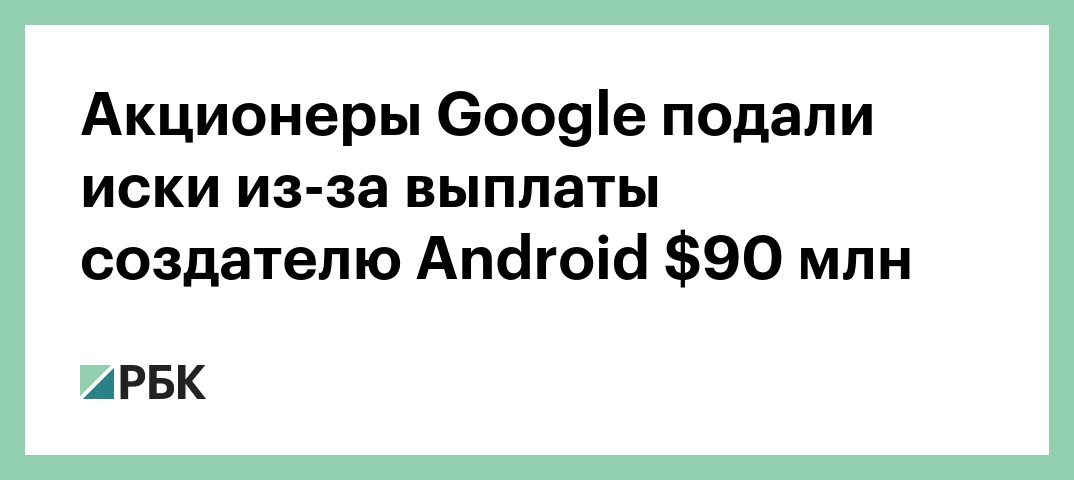 Акционеры подали иски против директоров холдинга Alphabet, владеющего Google. Причиной стала выплата одному из разработчиков мобильной операционной системы Android Энди Рубину выходного пособия в $90 млн при увольнении по обвинению в домогательствах. Об этом сообщает Bloomberg со ссылкой на судебные документы.