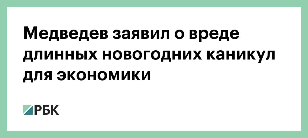 «Вообще, у нас праздники очень длинные, вы знаете, для экономики это плохо», — сказал Медведев на вручении премий правительства в области СМИ. Он добавил, что Россия в течение почти 14 дней «мало чего создает, но очень хорошо отмечает».