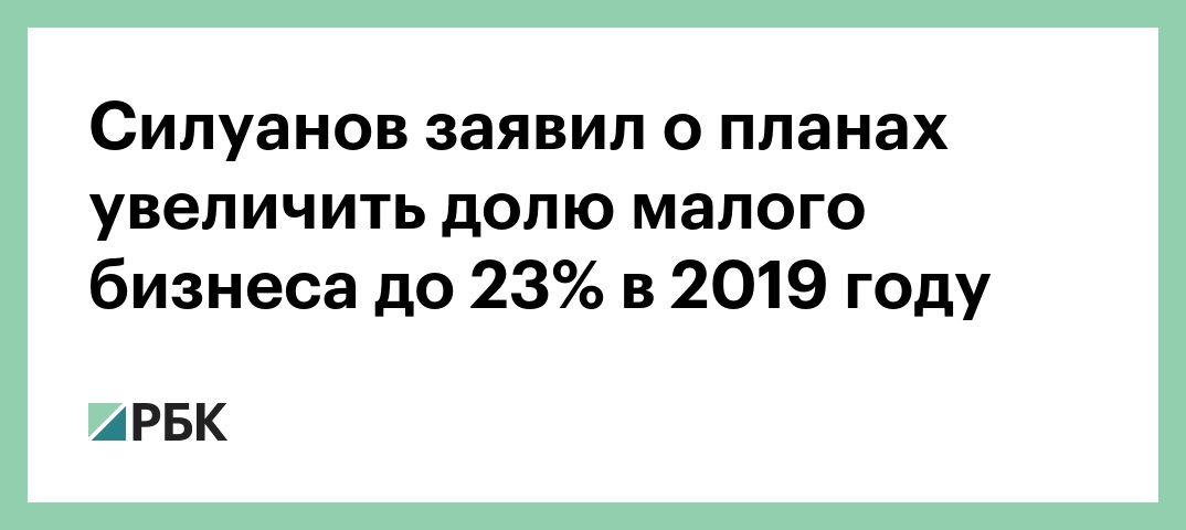 Первый вице-премьер и министр финансов Антон Силуанов заявил, что в 2019 году доля среднего и малого бизнеса в России составит 23%. Об этом он сообщил на совещании президента Владимира Путина с членами правительства, передает корреспондент РБК.
