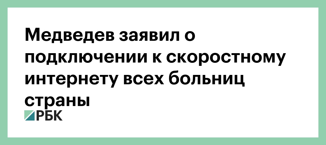 «Все медицинские учреждения страны — практически 9 тыс. объектов — теперь обеспечены выходом в Сеть. Причем это не просто выход в Сеть, а широкополосный доступ», — заявил Медведев в ходе совещания с вице-премьерами.