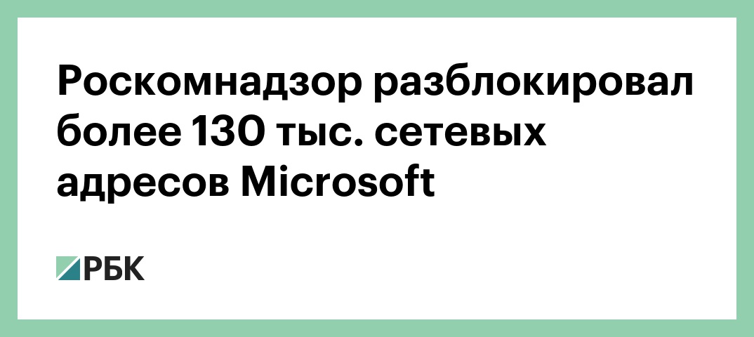 «Роскомнадзор снял ограничение с IP-подсети Microsoft (более 130 тыс. сетевых адресов)», — говорится в сообщении ведомства.