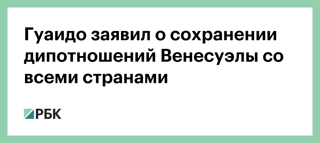 Лидер Национальной ассамблеи Венесуэлы Хуан Гуаидо, объявивший себя президентом, заявил, что страна сохраняет все действующие дипломатические отношения. Заявление размещено на его странице в Twitter.
