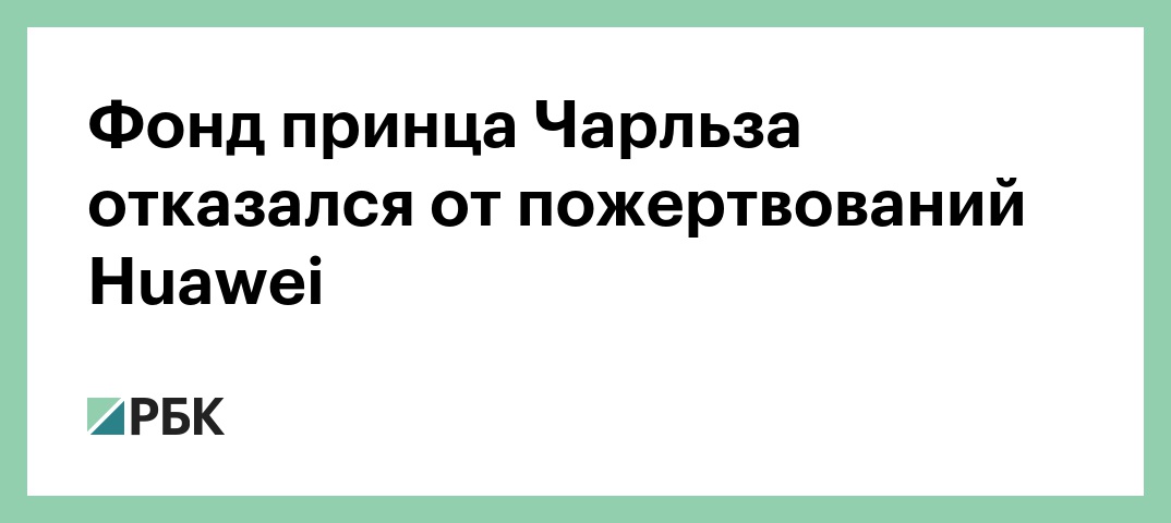 Благотворительная организация «Фонд принца» (Prince's Trust), основанная принцем Уэльским Чарльзом, перестанет принимать пожертвования от китайской компании Huawei «в свете общественной обеспокоенности». Об этом сообщает Reuters со ссылкой на заявление фонда.