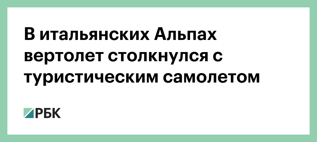 В Италии вертолет столкнулся с туристическим самолетом в автономной области Валле д'Аоста. В результате погибли пять человек и двое пострадали, сообщается в Twitter Национального альпийско-спелеологического корпуса спасения (CNSAS).