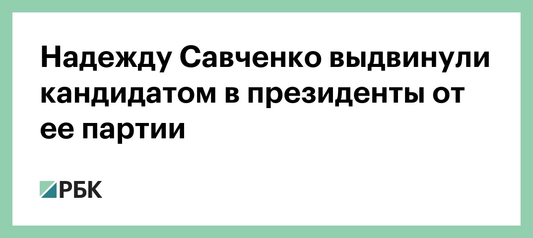 Надежда Савченко в конце марта 2018 года опубликовала видео, в котором пообещала выдвинуть свою кандидатуру на пост президента Украины. «Чтобы сохранить Украину как страну и государство, нужно найти мудрое решение. Действовать нужно на опережение. Я знаю, что делать, и решение для себя уже приняла. Придет время, и я стану кандидатом в президенты», — заявила она в ролике.