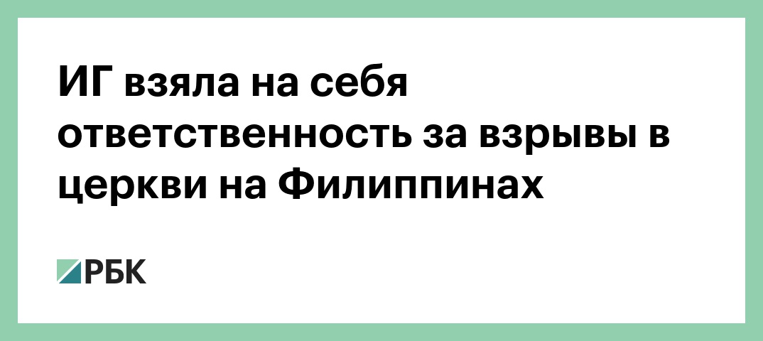 Запрещенная в России террористическая группировка «Исламское государство» (ИГ) взяла на себя ответственность за взрывы в католической церкви на Филиппинах. Об этом сообщает ведущая мониторинг информационной активности экстремистов американская SITE Intelligence Group.