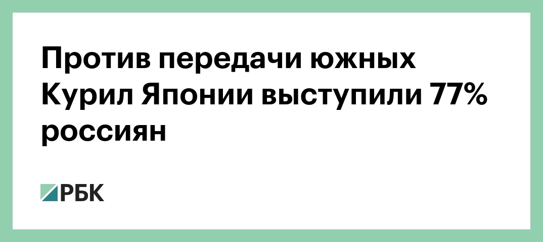 За передачу южных островов Курильской гряды Японии выступили 14% опрошенных. Участники опроса считают, что это стоит сделать прежде всего ради заключения мирного договора и развития отношений между странами (7%). ВЦИОМ зафиксировал усиление мнения о том, что по вопросу южных Курил при взаимодействии с Японией необходимо продолжать переговоры столько, сколько потребуется, чтобы прийти к взаимоприемлемому решению (с 35% в 2009 году до 51% в 2018 году).