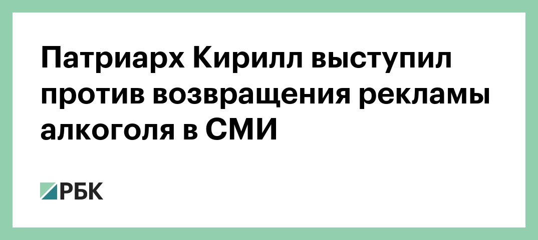 Патриарх Московский и всея Руси Кирилл выступил против рекламы пива и другой алкогольной продукции в средствах массовой информации, а также призвал депутатов не принимать законопроект, узаконивающий рекламу спиртного в СМИ. Об этом сообщает «РИА Новости».