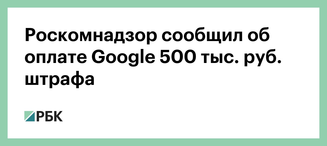 Роскомнадзор сообщил об оплате Google 500 тыс. руб. штрафа