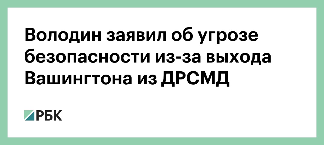 Володин заявил об угрозе безопасности из-за выхода Вашингтона из ДРСМД