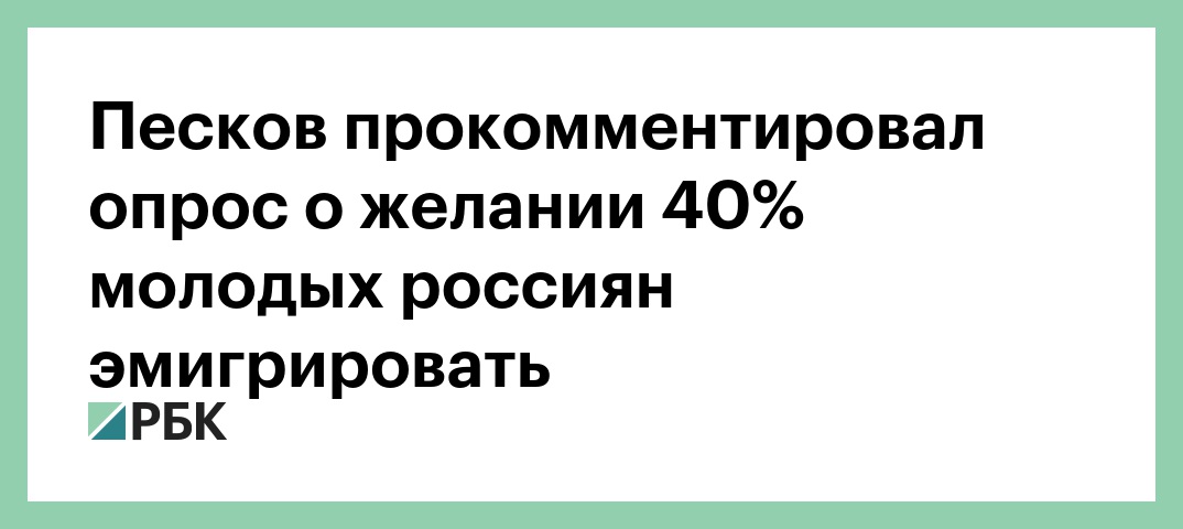 Пресс-секретарь президента Дмитрий Песков заявил журналистам, что считает результаты опроса, согласно которым 41% молодых россиян выразили желание уехать из страны, «абстрактными» и «относительными», сообщает корреспондент РБК.