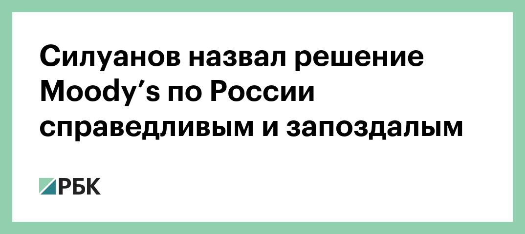 Решение агентства Moody's, которое повысило суверенный кредитный рейтинг России до инвестиционного уровня — «справедливое, хотя и несколько запоздалое». Об этом журналистам заявил первый вице-премьер и министр финансов Антон Силуанов. «Я рад, что очевидные успехи экономической политики России были по достоинству оценены Moody's», — заявил он.