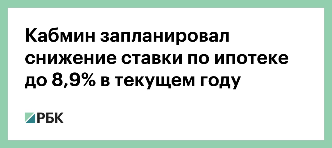 Кабмин запланировал снижение ставки по ипотеке до 8,9% в текущем году