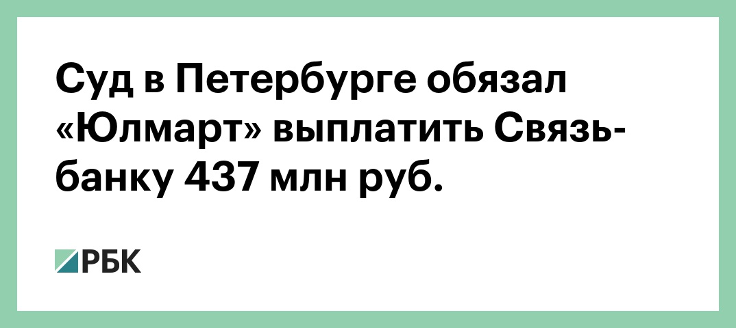 Суд в Петербурге обязал «Юлмарт» выплатить Связь-банку 437 млн руб.