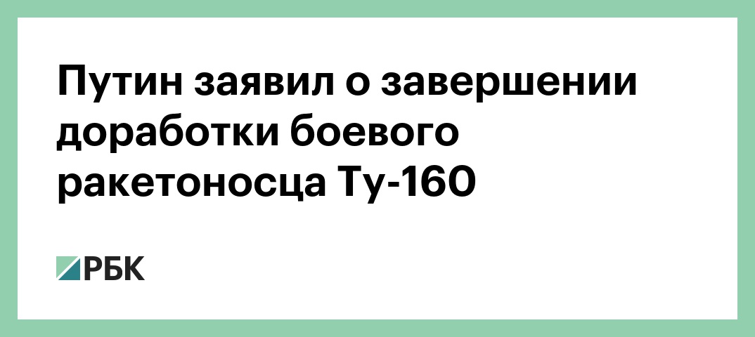 «Мы сейчас в Казани реализовали блестящий проект: фактически создали новую машину Ту-160 для вооруженных сил — сверхзвуковой боевой ракетоносец. И не только сам носитель, но и оружие к нему доработали. Работает все как часы», — отметил глава государства.