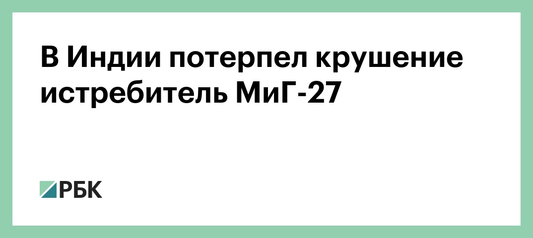 В районе индийского города Джайсалмер разбился истребитель МиГ-27 местных ВВС, пишет телеканал NDTV со ссылкой на заявление Минобороны страны.