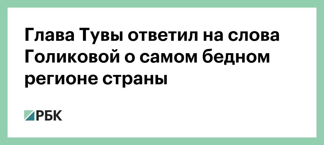 Ранее вице-премьер Татьяна Голикова на Российском инвестиционном форуме в Сочи назвала Туву самым бедным регионом страны. По ее словам, уровень бедности там «беспрецедентный» — 41% от численности населения. Голикова отметила, что это объясняется тем, что 35% населения республики дети, а в регионе «занятости почти никакой, и семьи живут на пособие».