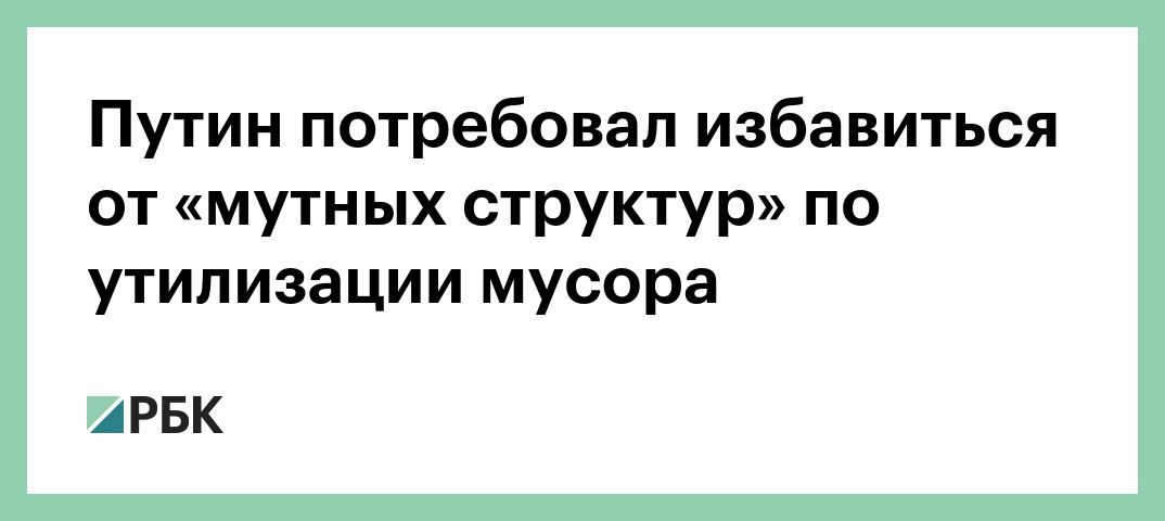 «Нужно навести порядок в этой сфере, избавиться от «мутных» структур», — сказал Путин. Он пояснил, что подобные организации не несут никакой ответственности, но получают сверхприбыли, «сваливая мусор где и как придется».