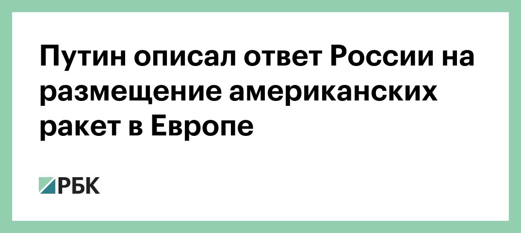 Россия будет вынуждена создать и развернуть новые виды вооружений, добавил Путин. Эти вооружения, по его словам, могут быть использованы не только против тех территорий, с которых для России будет исходить прямая угроза, но и в отношении тех территорий, где находятся центры принятия решений о применении такого вида вооружений.