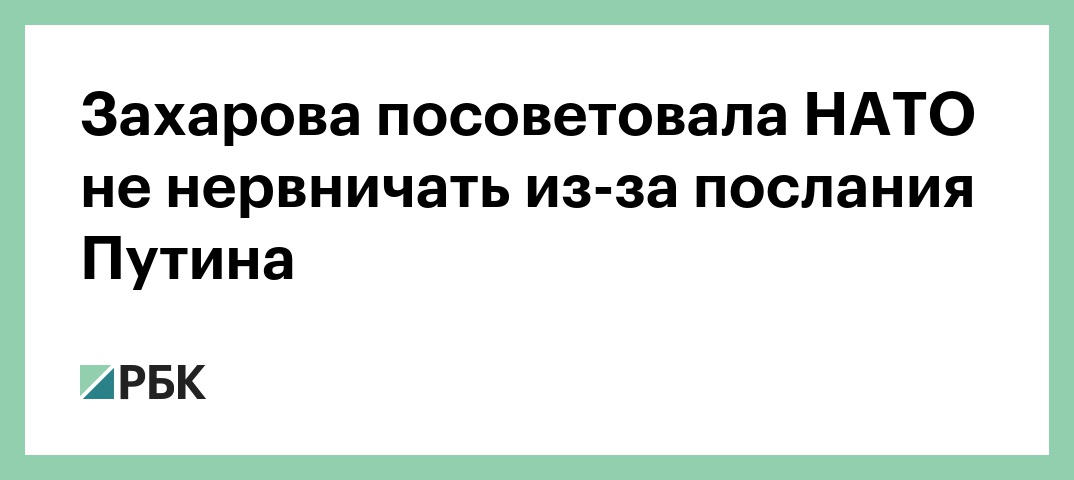 Захарова посоветовала НАТО не нервничать из-за послания Путина