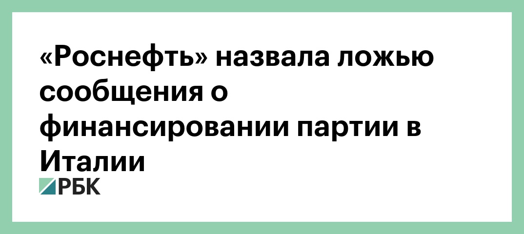 Компания «Роснефть» назвала ложью опубликованные в итальянских СМИ сведения о ее причастности к финансированию избирательной кампании политической партии «Лига Севера», входящей в состав правящей в Италии коалиции (наряду с Движением пяти звезд).